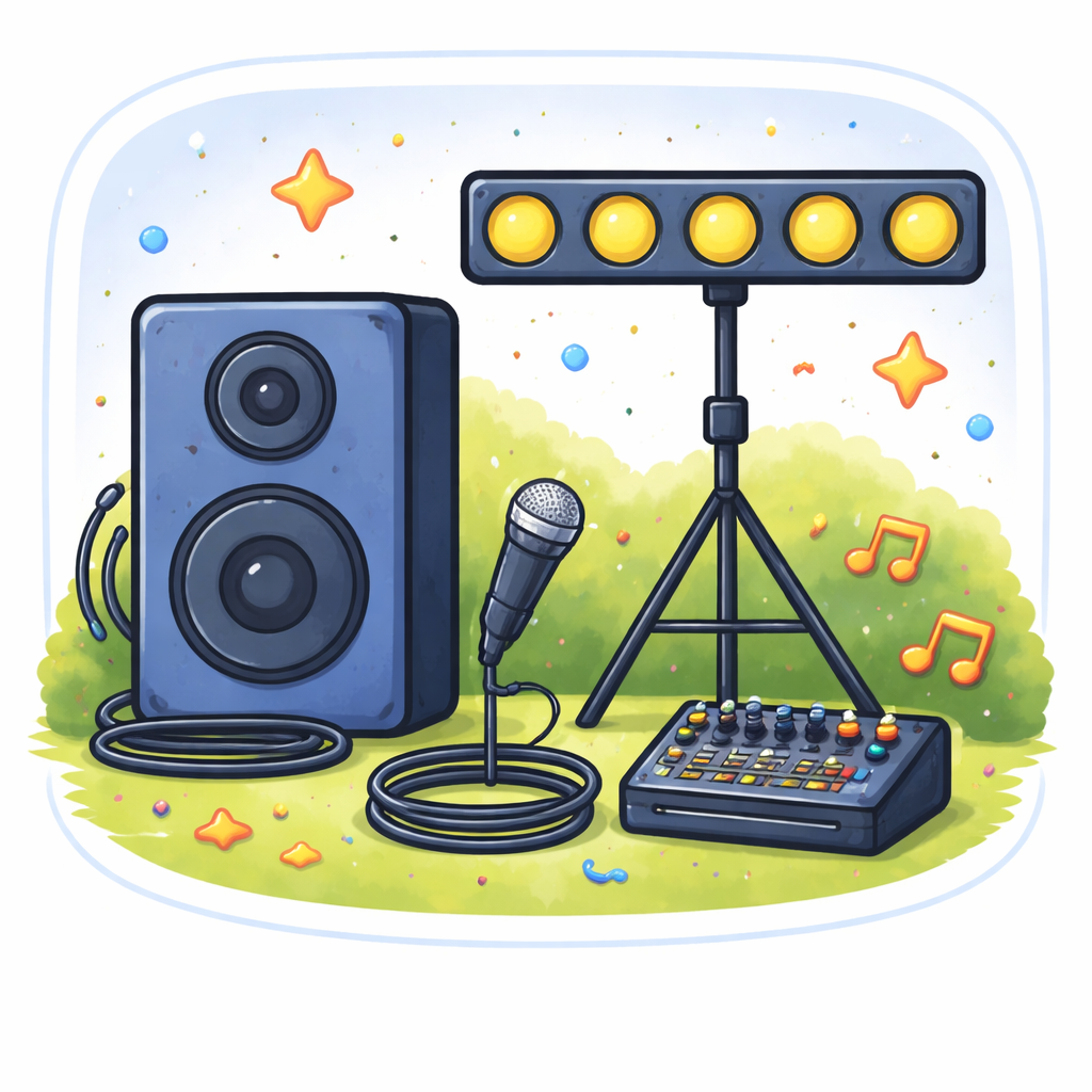 Ton- und Lichttechnik mieten für Partys, Hochzeiten oder Events. Hochwertige Musikboxen, einfache Bedienung und perfekter Sound für Ihre Veranstaltung.